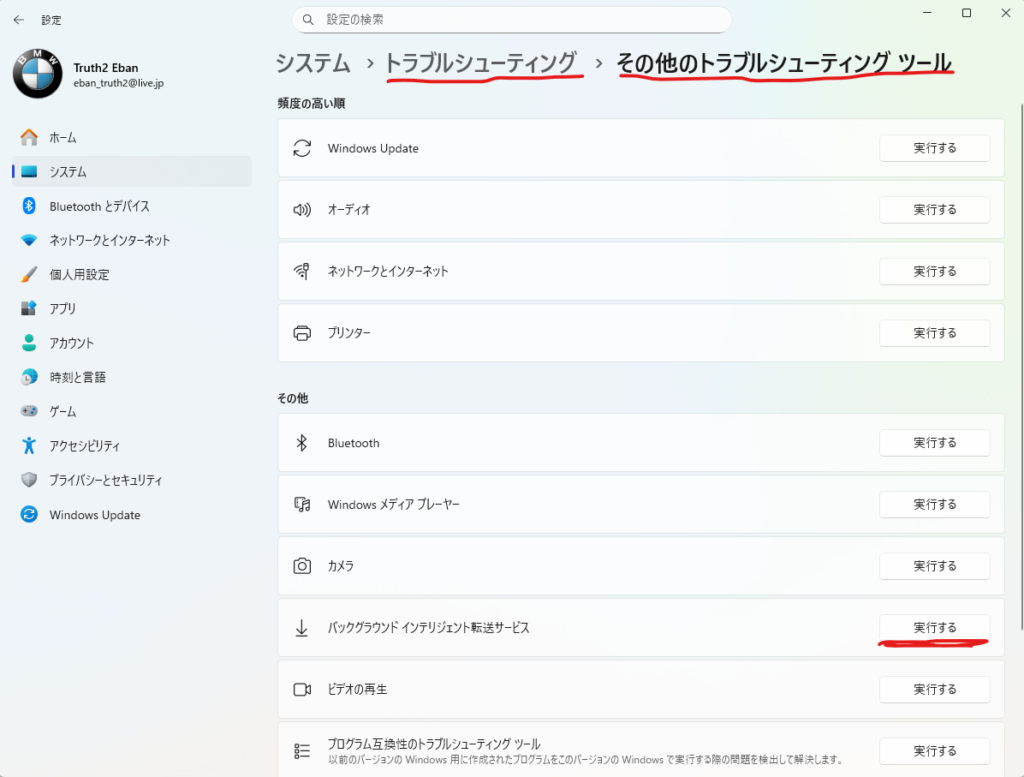 お使いのデバイスでこのトラブルシューティングを実行しますか? → はい で実行します。