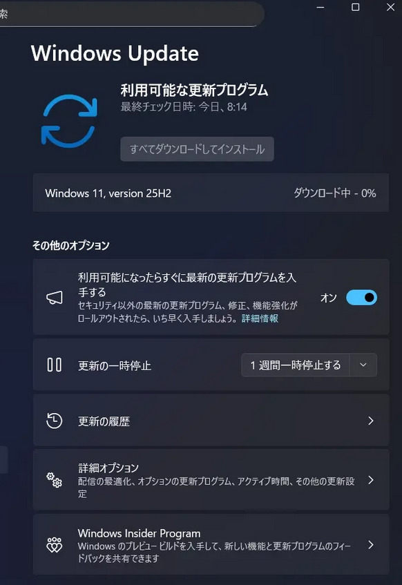 25H2を設定のアップデートからそのまま行うと失敗する例がありました。
