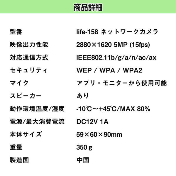 ●呼び掛け可能:カメラにマイク及びスピーカーが内蔵されておりアプリを通してカメラの前にいる人に話しかけることも可能です。